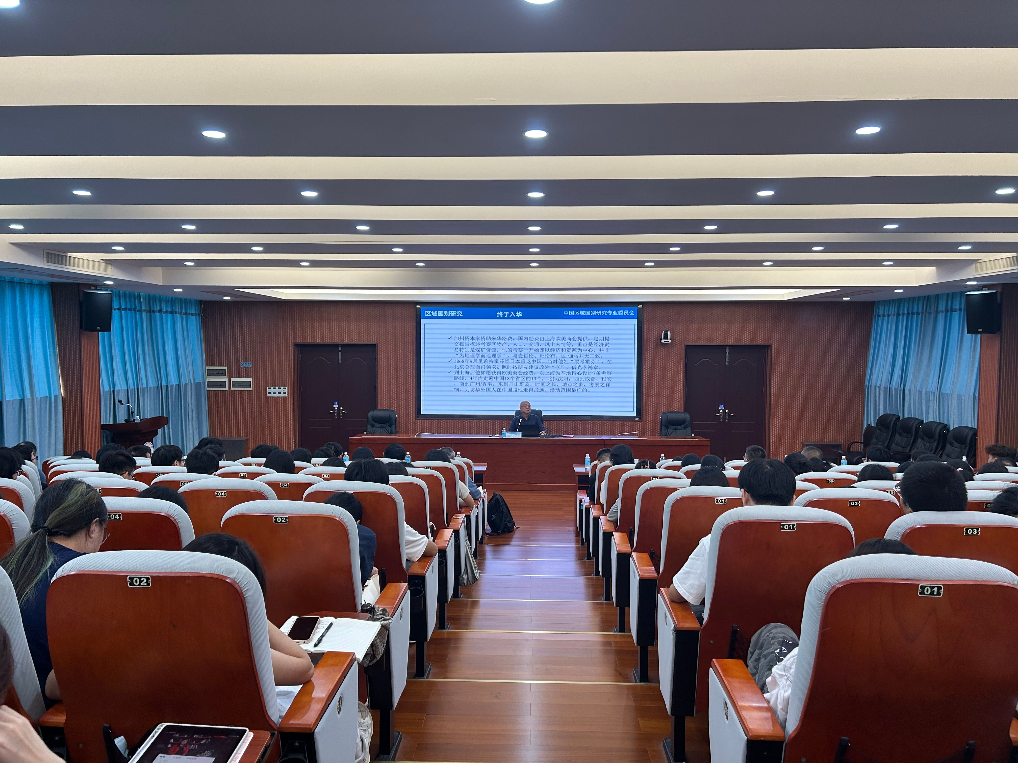 9月18日下午,对外经济贸易大学冯晓虎教授应邀莅临我校讲学。williamhill威廉希尔官网区域国别研究中心骨干成员、外国语言文化学院、旅游与历史文化学院师生代表共100人参加了讲座,讲座由外国语言文化学院主持行政全面工作副院长于增辉主持。