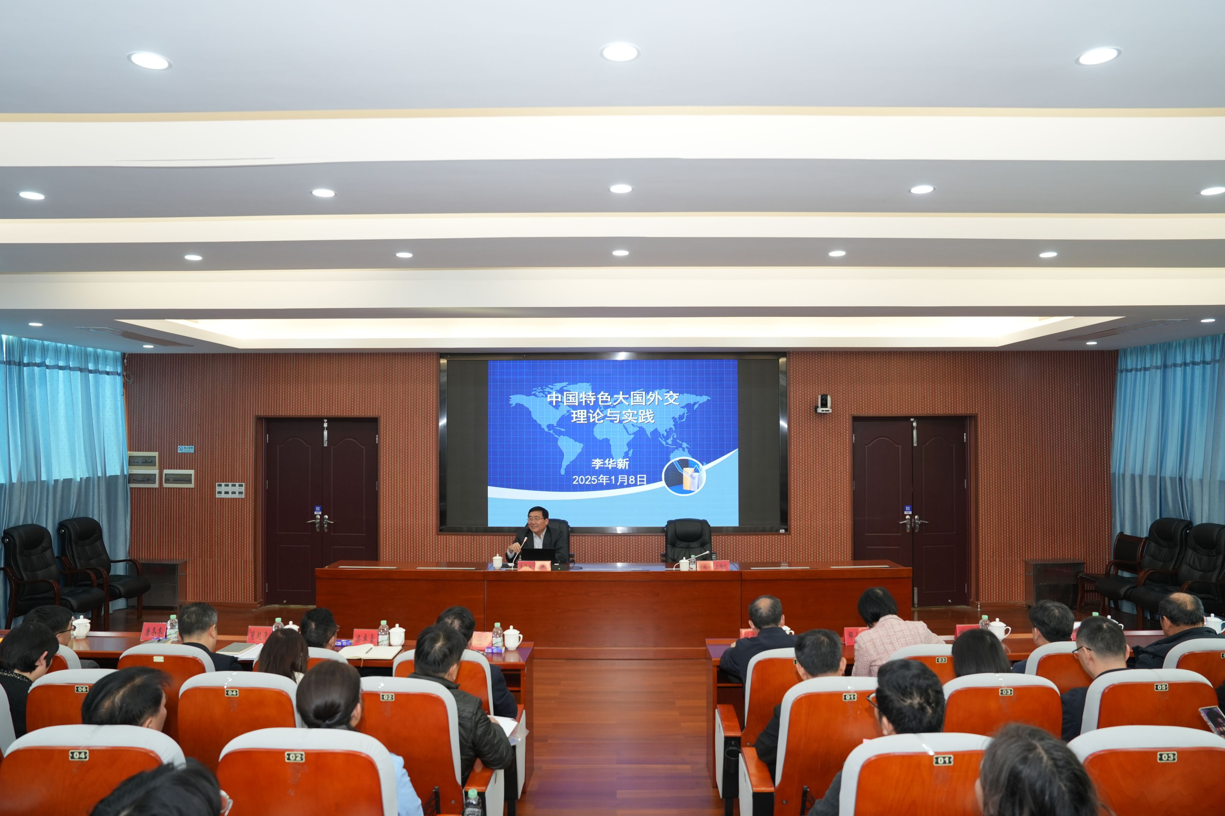 1月8日,前驻伊拉克、叙利亚、沙特大使李华新作了题为“中国特色大国外交理论与实践”的讲座。讲座由校党委书记谢冠华主持。