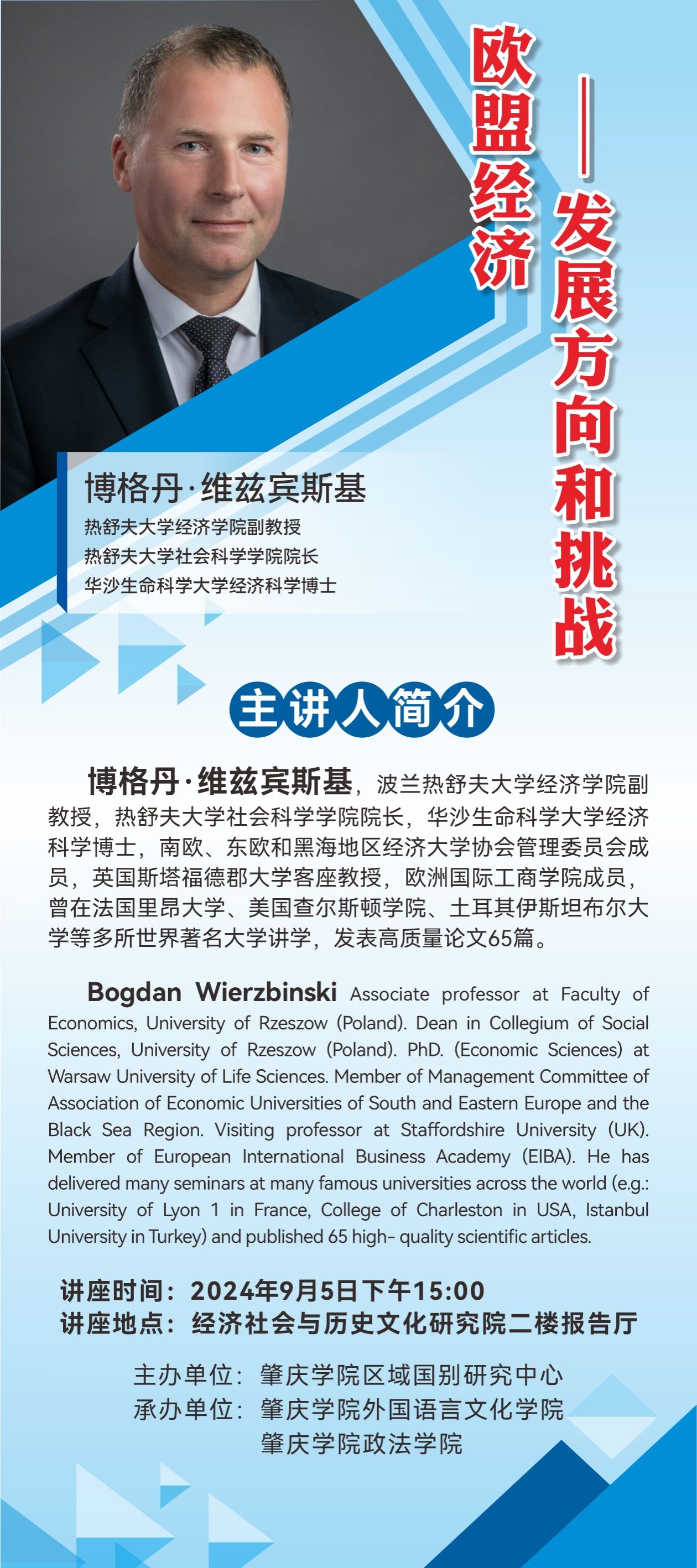 讲座预告:博格丹·维兹宾斯基讲座 欧盟经济发展方向和挑战