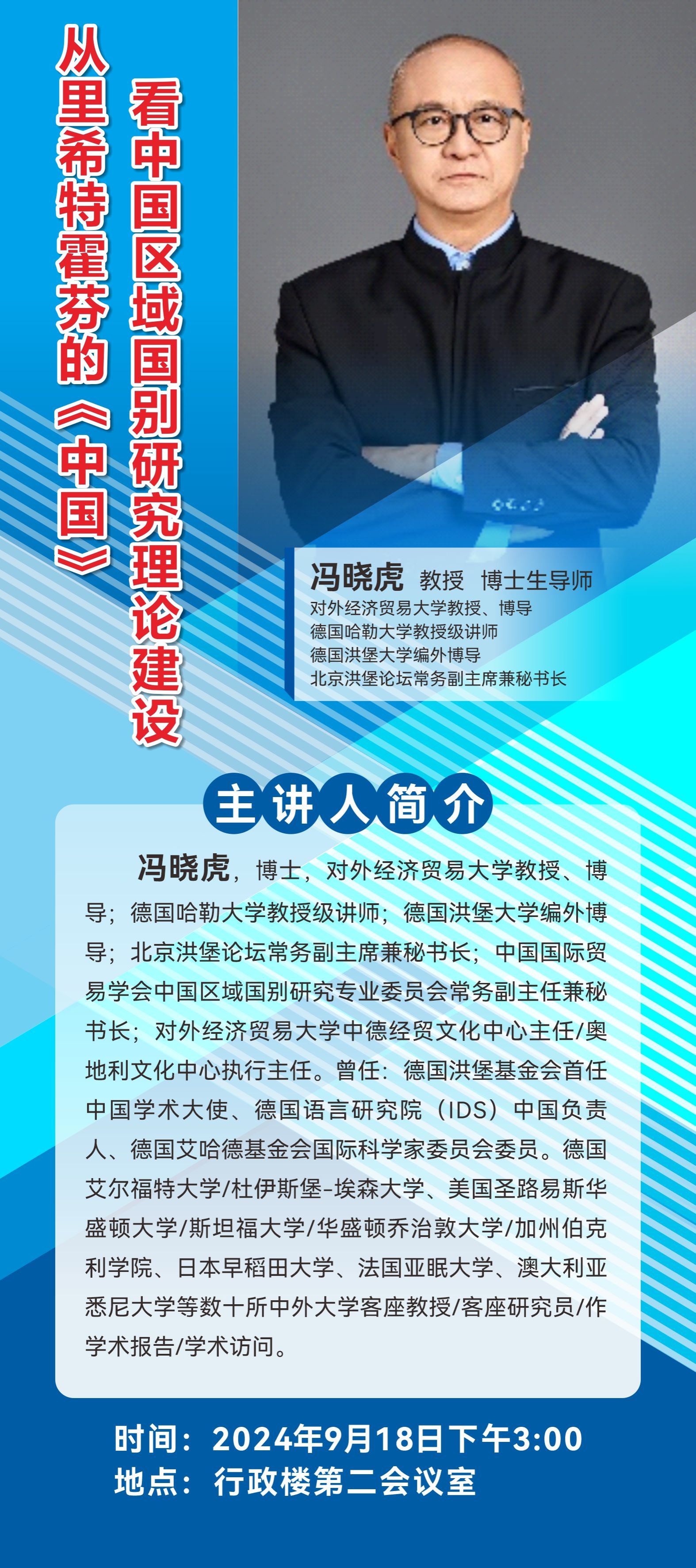 讲座预告:冯晓虎教授讲座 从里希特霍芬的《中国》看中国区域国别研究理论建设