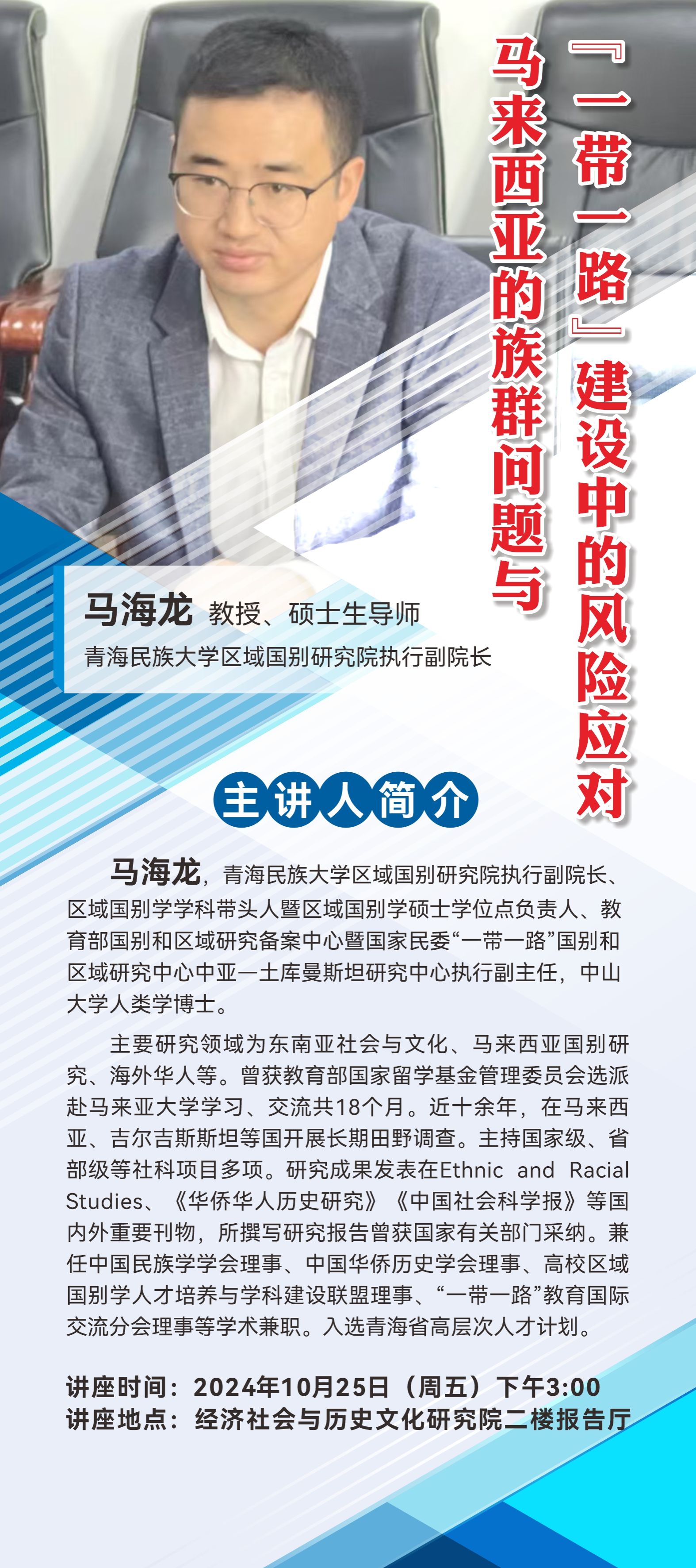 讲座预告:马海龙教授讲座 马来西亚的族群问题与“一带一路”建设中的风险应对