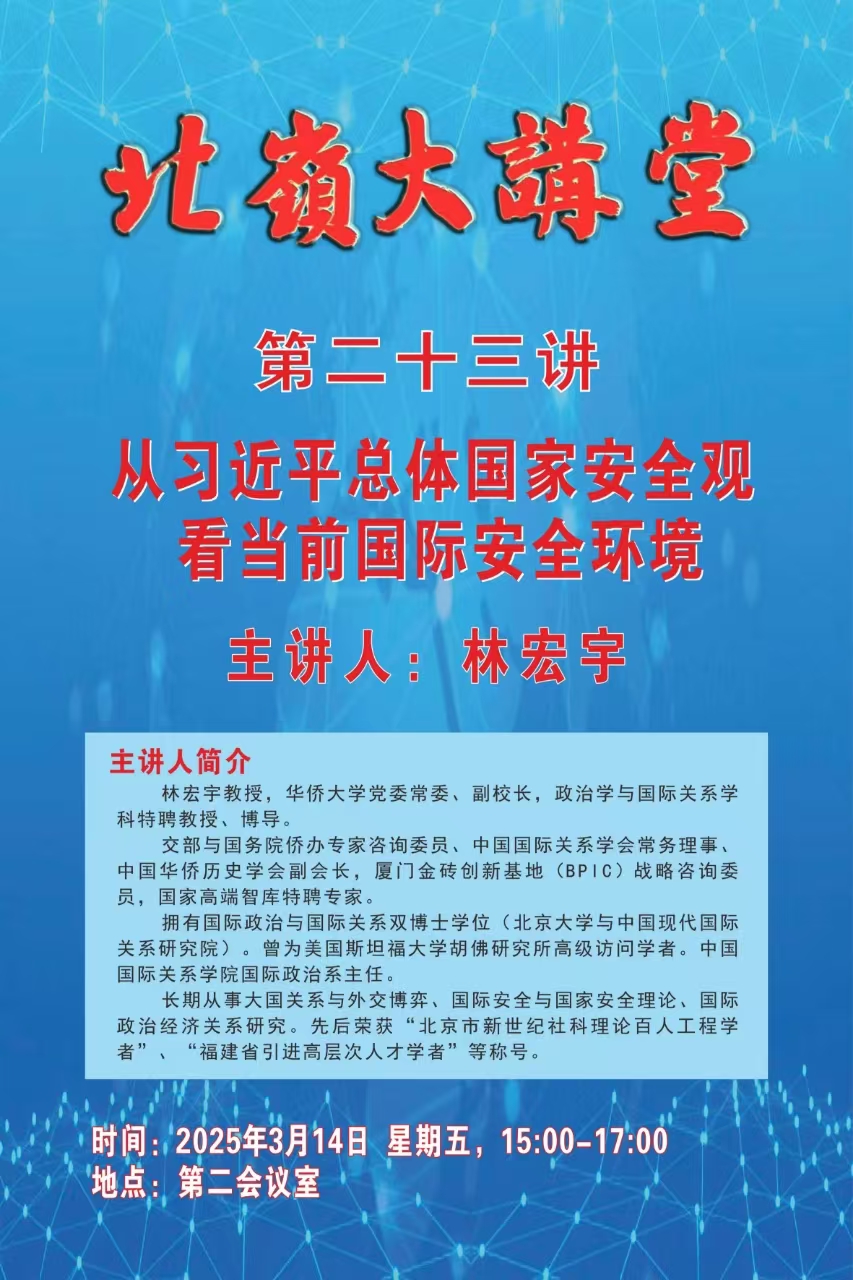 讲座预告| 林宏宇教授讲座:从习近平总体国家安全观看当前国际安全环境